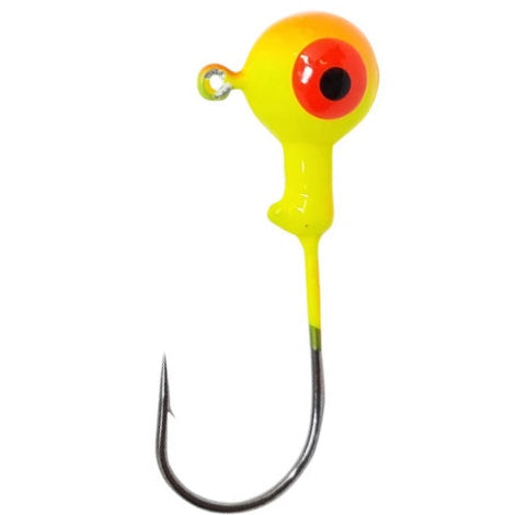 Ball Head Jig featuring hooks made of cold forged steel, a light wire and straight point hook. Premium painted head with paint removed from eye.