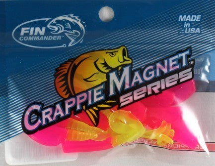 - Length: 2 inches The Fin Commanders name brand is being Discontinued by Leland Lures. They will now be packaged as Crappie Magnet. Same great bait just a new name.